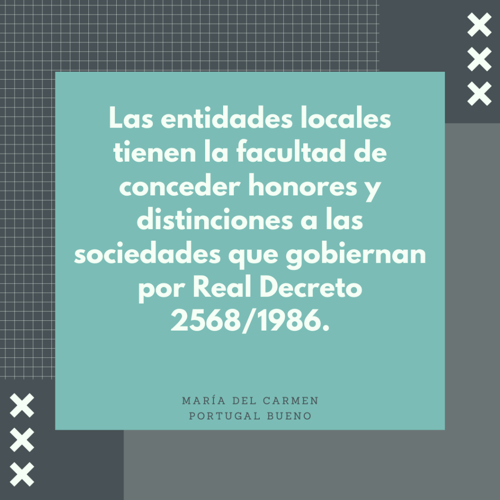 Las entidades locales tienen la facultad de conceder honores y distinciones a las sociedades que gobiernan.